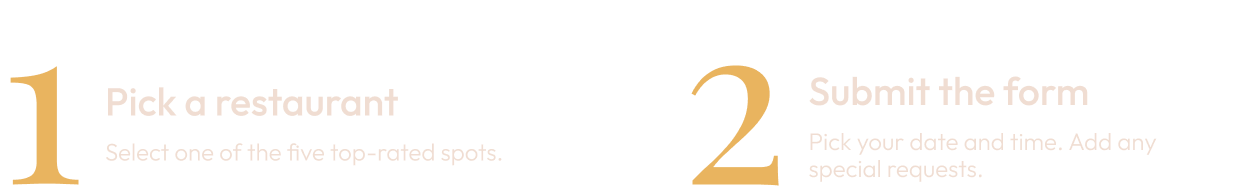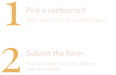 If a restaurant is on Bookem, it has gone through a rigorous approval process. If it’s not, you’re not missing anything. Because time is luxury, and we’re not here to waste yours.