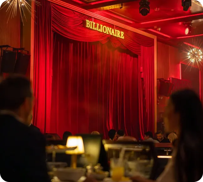 If you’re looking for dinner that turns into something more, this is it. Billionaire is where the lights come down, the show kicks off, and the energy stays up all night - with live performances, great music, and a setting that keeps you in the moment.